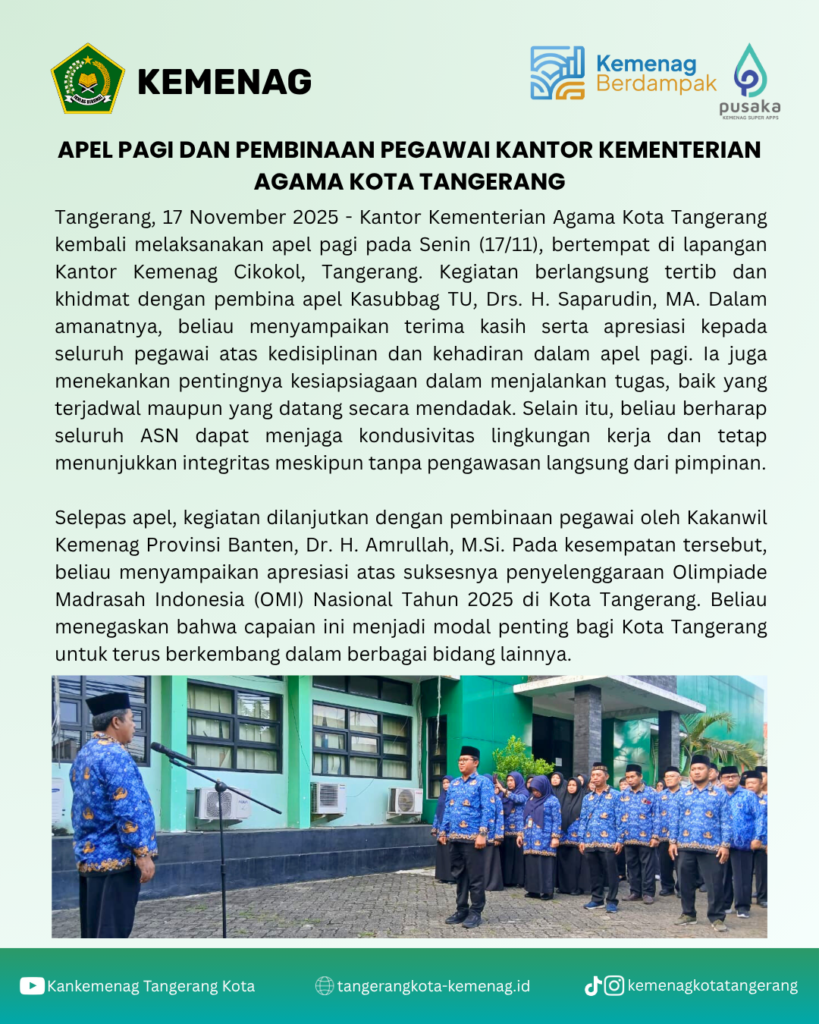 APEL PAGI DAN PEMBINAAN PEGAWAI KANTOR KEMENTERIAN AGAMA KOTA TANGERANG