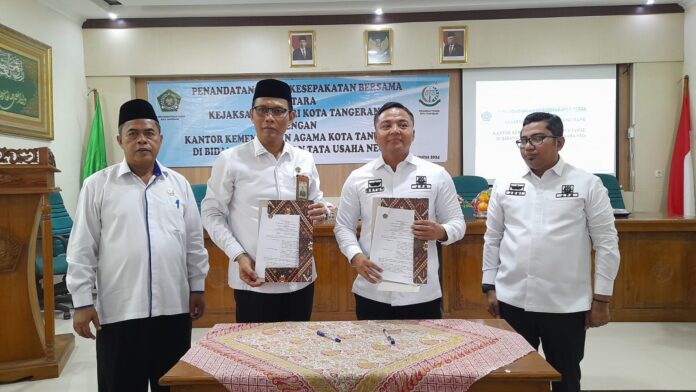 Penandatanganan Kesepakatan Bersama Antara Kejaksaan Negeri Kota Tangerang Dengan Kantor Kementerian Agama Kota Tangerang di Bidang Perdata dan Tata Usaha Negara diaula Kantor Kemenang Kota Tangerang. Senin,(12/08/2024)