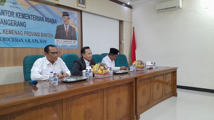 Kemenag Kota Tangerang, Tangerang-Kepala Kantor Wilayah Kemenag Provinsi Banten, Bapak H. Nanang Fatchurochman mengadakan kegiatan pembinaan bagi Para Pegawai Kementerian Agama Kota Tangerang. Acara ini berlangsug di Aula Kantor Kementerian Agama Kota Tangerang dan dihadiri oleh Kepala Kantor, Kasubbag TU, Kepala Seksi dan Penyelengara, Kepala Madrasah Negeri dan Kaur TU, Kepala KUA dan Penghulu, Pengawas Madrasah dan PAI, Penyuluh PNS dan PPPK, dan Seluruh Pegawai Kemenag Kota Tangerang. Selasa, (20 Agustus 2024).